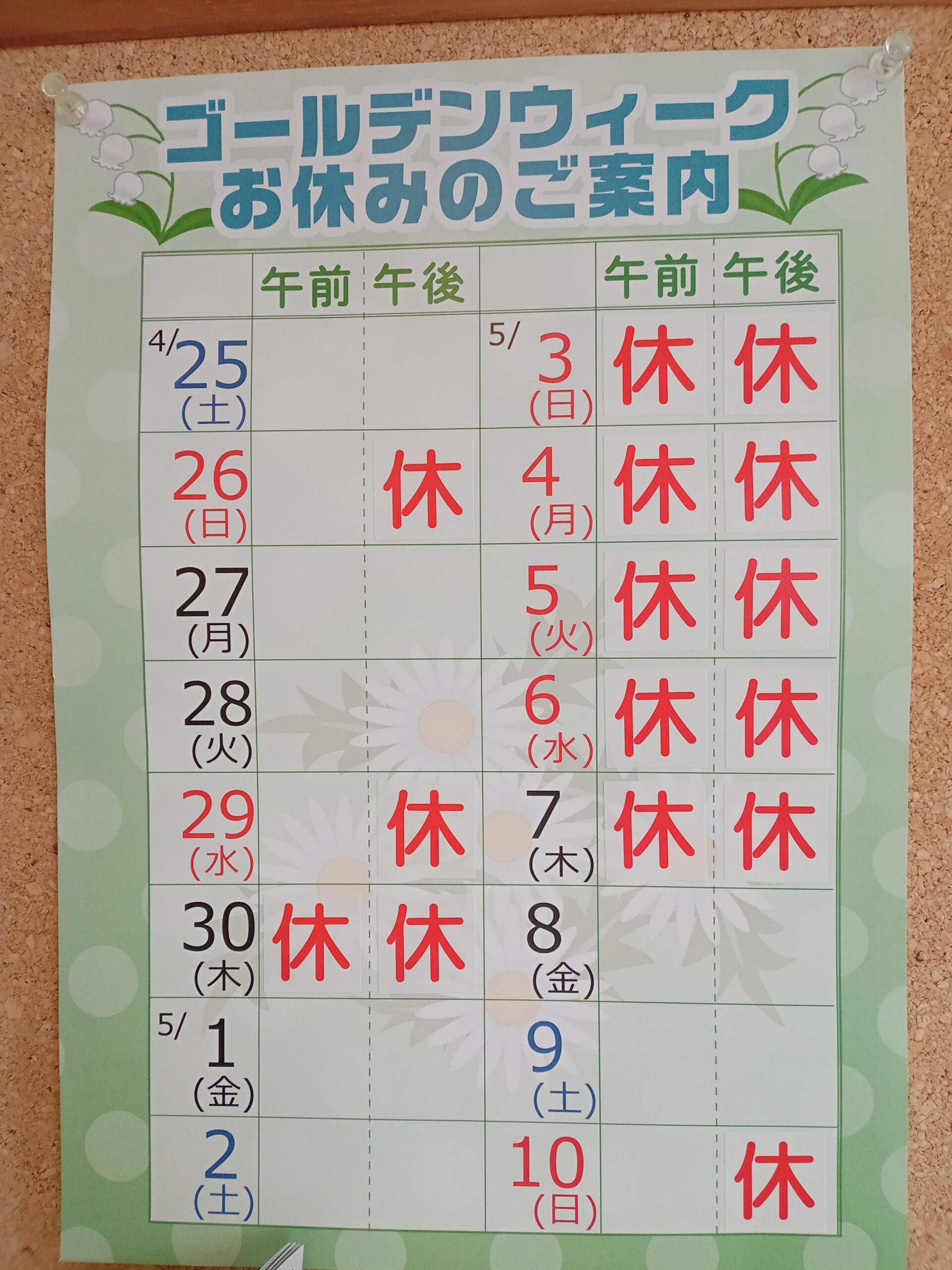ゴールデンウィークお休みのご案内